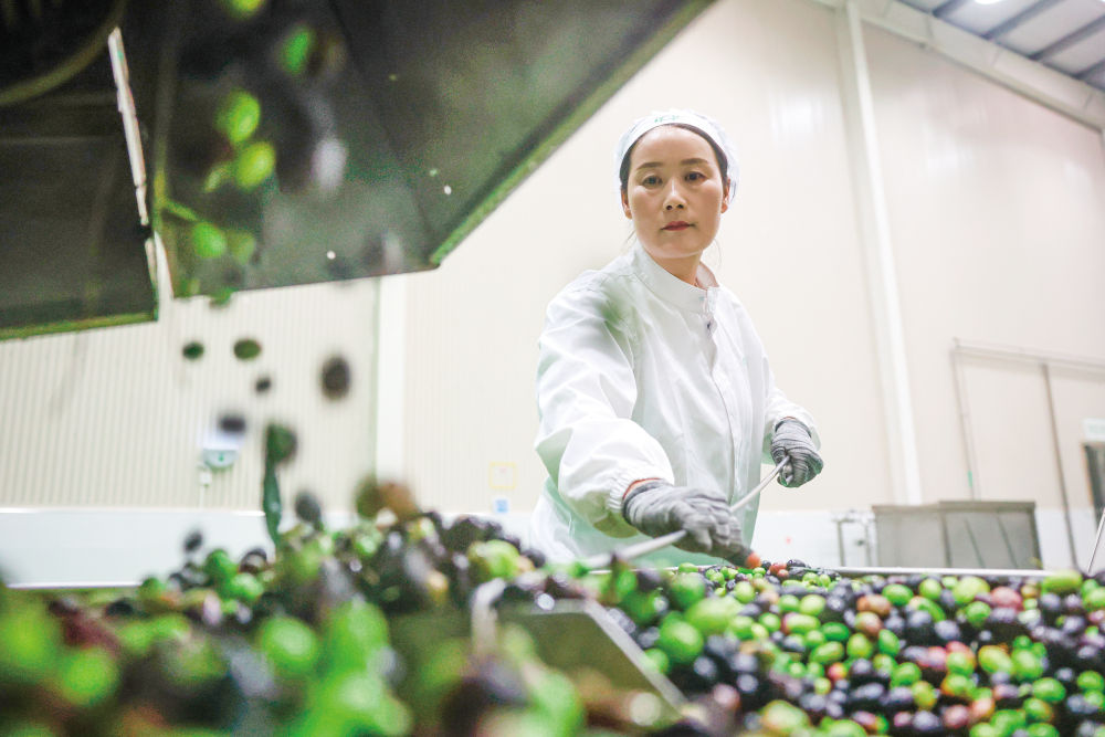 在中國西北的甘肅隴南,上百萬畝油橄欖已采摘進入榨油生產(chǎn)線,當?shù)厝舜汗?jié)拜年帶上一盒新榨橄欖油,健康又體面;