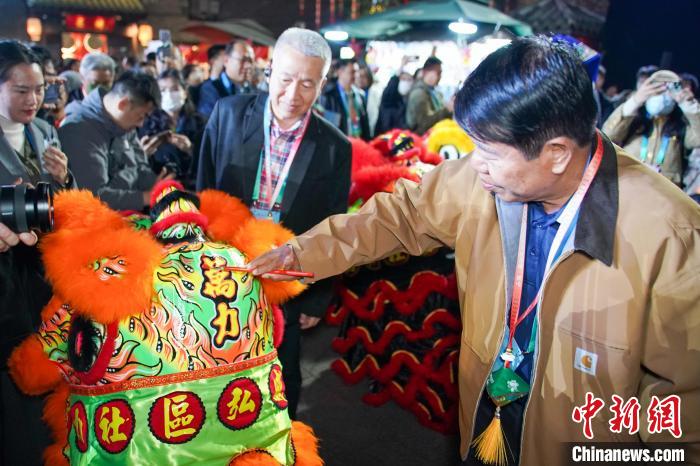 用朱砂為舞獅點(diǎn)睛,象征喚醒獅子,賦予其新生;揭紅紙拓印“?!弊郑淮┥蠎蚍w驗(yàn)邕劇獨(dú)特韻味……中國(guó)農(nóng)歷春節(jié)臨近,參加“世界市長(zhǎng)對(duì)話(huà)·南寧”活動(dòng)的外賓們,在廣西南寧歷史文化街區(qū)感受中國(guó)新春民俗,探尋年味。