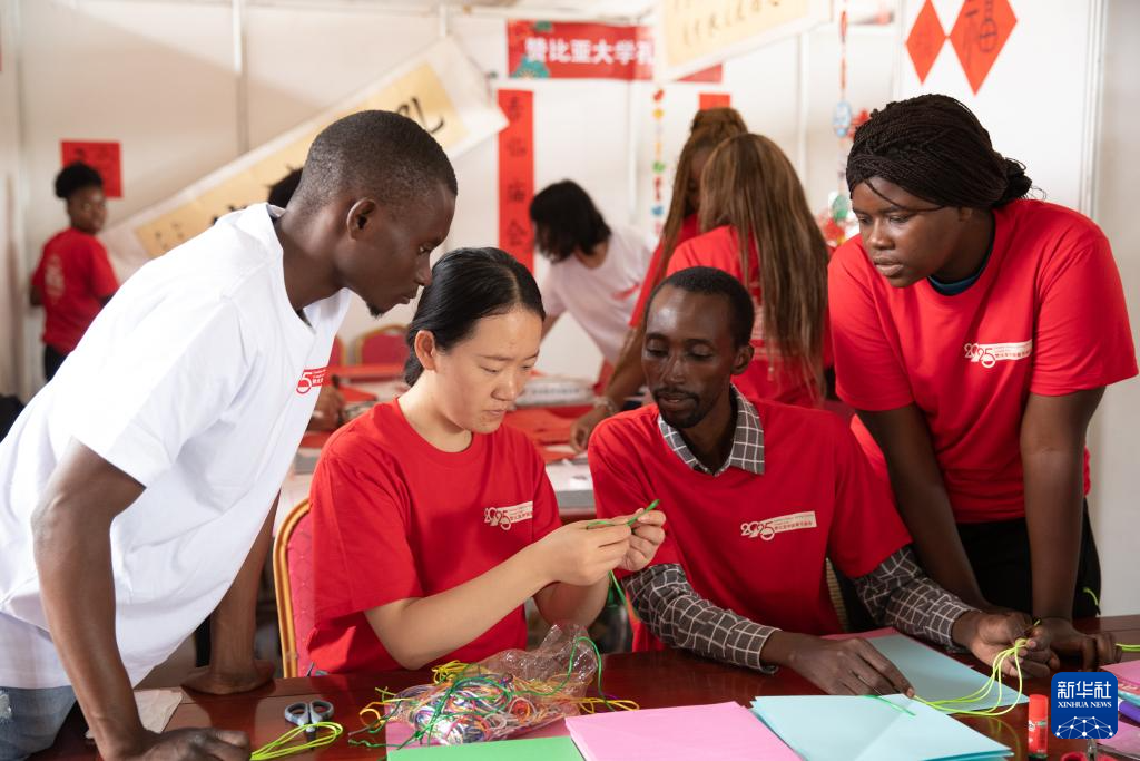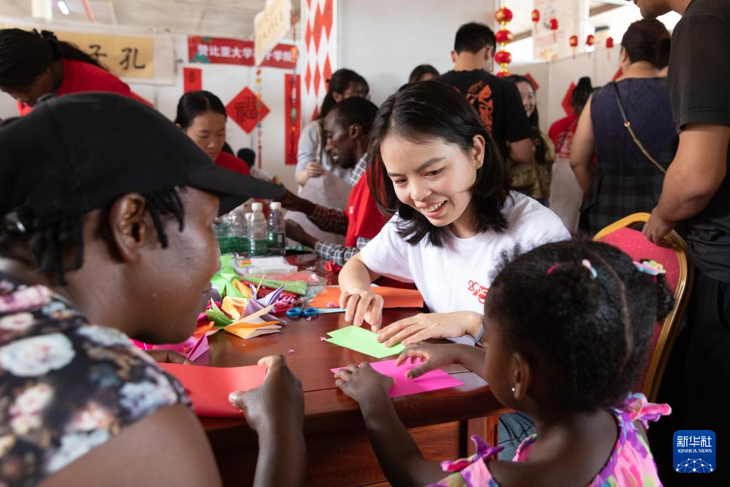 在廟會(huì)現(xiàn)場(chǎng)的贊比亞孔子學(xué)院展位前,人頭攢動(dòng)。包括書(shū)法體驗(yàn)、剪紙、折紙展示和猜字謎等豐富的文化互動(dòng)項(xiàng)目,吸引人們紛紛參與體驗(yàn)。一位贊比亞媽媽帶著孩子在老師指導(dǎo)下完成她的第一個(gè)中國(guó)結(jié)作品,她高興地說(shuō):“原來(lái)中國(guó)藝術(shù)這么有趣!希望我的孩子有一天可以去孔子學(xué)院學(xué)習(xí)?!?/p>