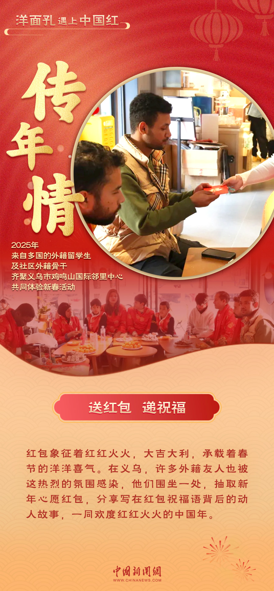 當(dāng)“洋面孔”遇上“中國(guó)紅”,一場(chǎng)跨越文化的交融在義烏上演。紅火的對(duì)聯(lián)、熱鬧的戲劇表演、香甜的年夜飯……外國(guó)友人們沉浸在中國(guó)年的喜慶氛圍中,感受著這份獨(dú)特的溫暖與歡樂(lè)。義烏的年味,不僅溫暖了“世界老鄉(xiāng)”的心,也讓全球各個(gè)地方看到了中國(guó)年的魅力與溫度。