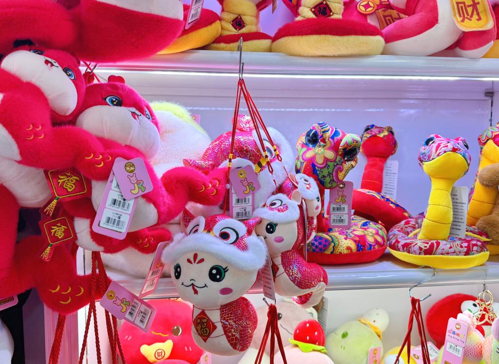 農(nóng)歷乙巳蛇年將至,結(jié)合生肖主題,陸慶榮與團(tuán)隊早在去年七、八月就敲定了三十多個品種的款式設(shè)計,而十一月、十二月便是出貨銷售的高峰期,每天能賣出約兩萬只毛絨玩具。其中,“福寶蛇”和布藝蛇玩具是“人氣王”。