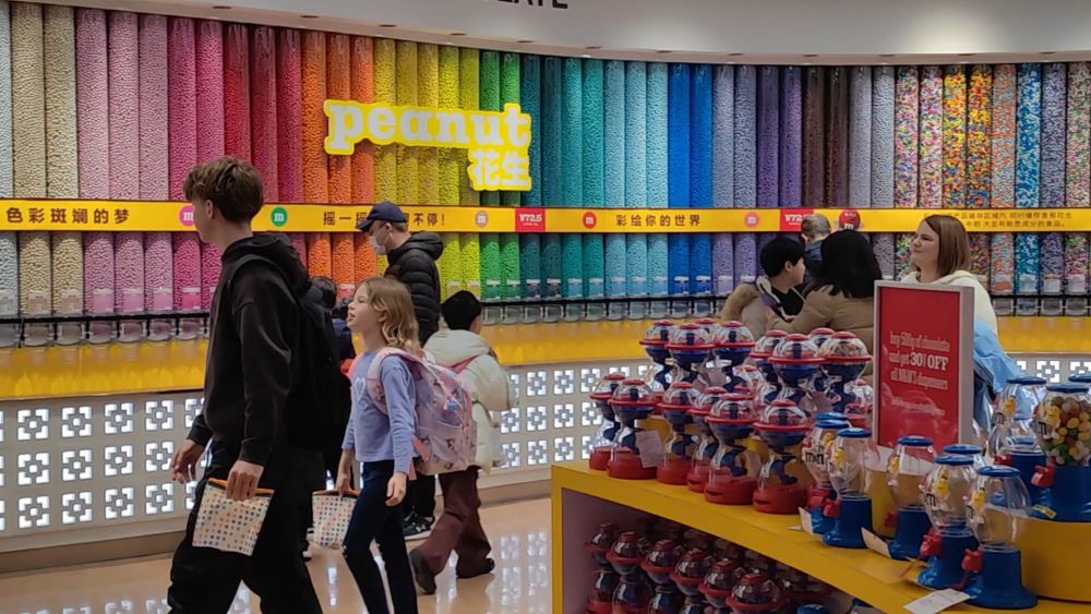 在南京路上的第一食品商店,大白兔奶糖、汪裕泰茶葉、石庫門黃酒都是老外喜歡的“老字號”伴手禮。同樣搭上這波消費(fèi)熱潮的還有各種新“國貨”品牌。