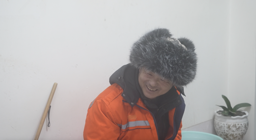 從下午1點半到4點,記者和工友們一刻未停。風雪中,大伙都變成了“白眉大俠”,睫毛上也結了冰。王師傅提出,去附近的環(huán)衛(wèi)驛站里歇歇腳,喝些熱茶。
