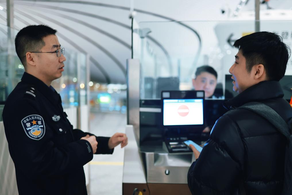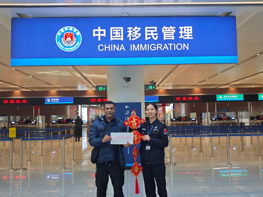 “歡迎回家!”“過(guò)年好!”“春節(jié)快樂(lè)!”移民管理警察的一聲聲問(wèn)候,是旅客入境后感受到的第一縷中國(guó)溫暖。