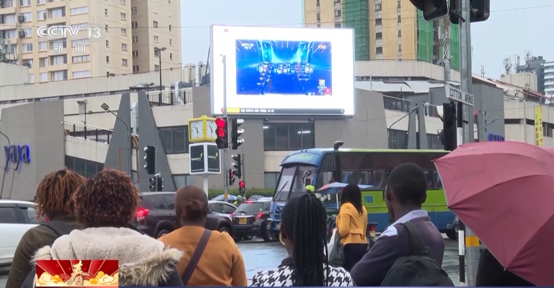 肯尼亞首都內(nèi)羅畢商場(chǎng)大屏播放總臺(tái)蛇年春晚