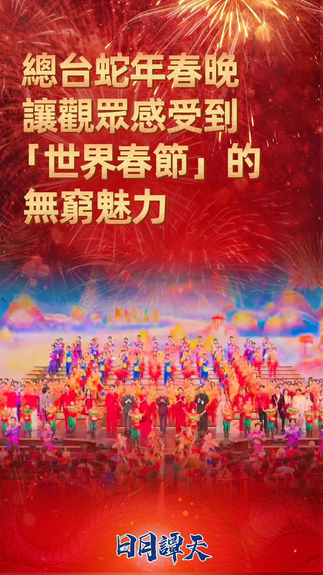 一年一會(huì)的總臺(tái)春晚已經(jīng)不僅是所有中華兒女共同的春節(jié)記憶,蛇年春晚這場(chǎng)視聽盛宴無疑給全球受眾帶來了一個(gè)令人驚艷、印象深刻的春節(jié)。譚主最后想說,相信隨著中國(guó)進(jìn)一步推進(jìn)中國(guó)式現(xiàn)代化進(jìn)程,進(jìn)一步推動(dòng)與世界的交流合作,已經(jīng)從“中國(guó)春節(jié)”成為“世界春節(jié)”的這一文化符號(hào),將受到更多喜愛、更加風(fēng)靡全球,無窮魅力也將更加被全世界感受和認(rèn)同。
