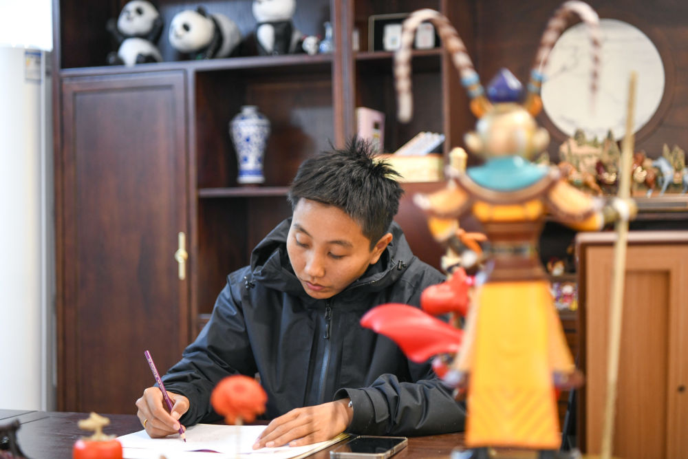 邱玥在工作室為下一個(gè)燈會(huì)項(xiàng)目進(jìn)行設(shè)計(jì)(1月27日攝)。