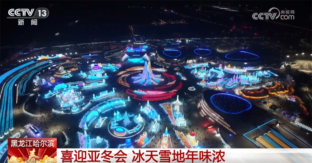 央視網(wǎng)消息:春節(jié)期間,很多人選擇來到哈爾濱冰雪大世界,在冰天雪地里感受濃濃的年味。恰逢第九屆亞冬會即將召開,園區(qū)中景觀設(shè)計充滿亞冬會元素。當春節(jié)與亞冬會相遇,在哈爾濱冰雪大世界里是什么景象呢?接下來,我們跟隨總臺記者鏡頭,去感受一下夜晚冰雪大世界里的亞冬會氛圍和濃濃年味。