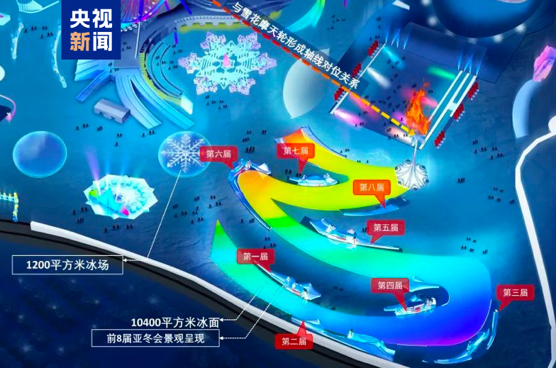 崔師堯介紹,“整個(gè)冰面有一個(gè)方向性色彩的律動(dòng),配合冰道兩邊往屆亞冬會(huì)的元素,讓人仿佛進(jìn)入了一個(gè)流光溢彩的時(shí)光隧道?!睔v史與當(dāng)代、過(guò)去與現(xiàn)在、小朋友與冠軍火炬手,在這一刻仿佛看到了傳承和發(fā)展。