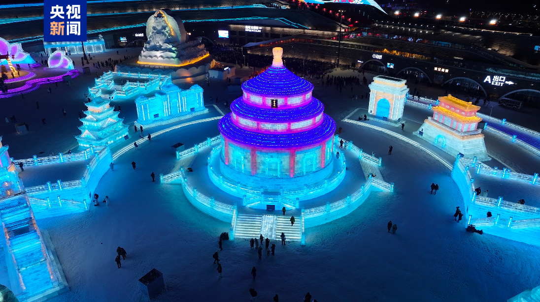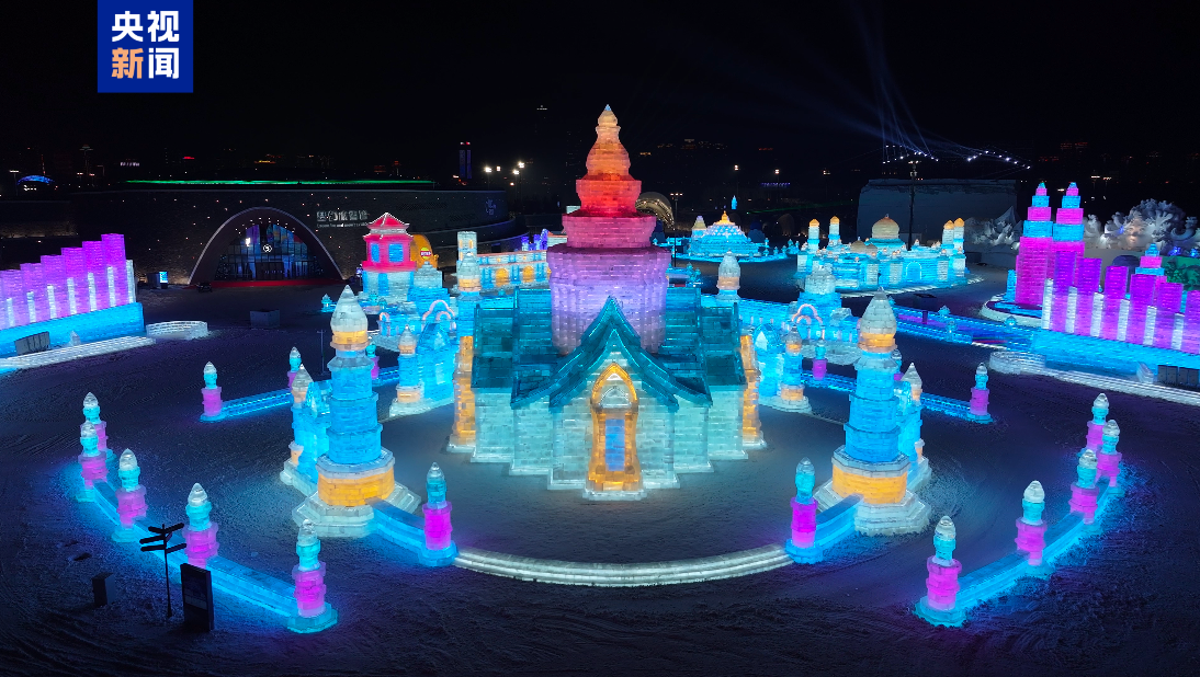 崔師堯說(shuō),“哈爾濱作為一個(gè)冰城,我們想通過(guò)這種方式傳播冰雕文化。在整體構(gòu)成上,這些地標(biāo)性冰雕建筑環(huán)繞著主塔,以傳達(dá)‘冰雪同夢(mèng)、亞洲同心’的主題?!?/p>