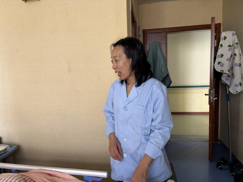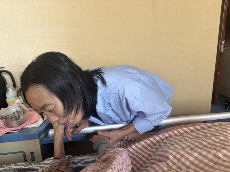 來(lái)自黑龍江省的李世娟,今年55歲,因?yàn)槟昙o(jì)原因本想從事育兒嫂工作的她只能從事護(hù)理工作?!凹艺菊f(shuō)雇主更想要年輕些的阿姨帶孩子?!陛氜D(zhuǎn)之下,她考取了護(hù)工資格證,成為一名老年護(hù)理員。“這是我照顧的第二位老人”她輕聲說(shuō)。第一位老人出院時(shí),家屬本想帶她走,她婉拒了,“看著他們好起來(lái)我也高興,但這里總有更需要我的人?!闭勗掗g,90床奶奶的兒子來(lái)探望老母親,輕摸著奶奶的頭一遍又一遍地問(wèn)著“睜眼看看,我是誰(shuí)呀”,奶奶也是含糊不清地說(shuō)著“不知道”,兒子半開玩笑地說(shuō)“傻老太太”。李世娟在一旁緊忙說(shuō):“你不要說(shuō)她傻啊,糊涂啊,因?yàn)榛加邪柶澓DY的人有時(shí)是清醒的,一聽你說(shuō)她傻她就覺(jué)得自己好像是傻了”,李世娟向記者說(shuō),自己平日很喜歡看健康教育節(jié)目,見到認(rèn)識(shí)的人也會(huì)多科普幾句,“我姑娘說(shuō),媽你別老給人家上課,我說(shuō)媽那不是上課,只是想把自己知道的分享給人家”,李世娟一邊說(shuō),一邊難掩苦笑。