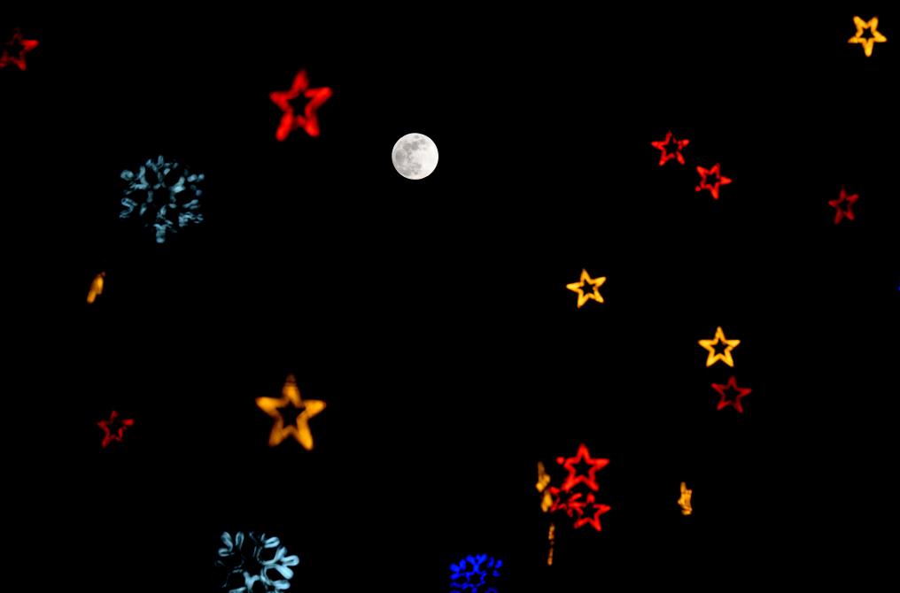 ↑在哈爾濱中央大街步行街拍攝的月亮。新華社記者 王曦 攝