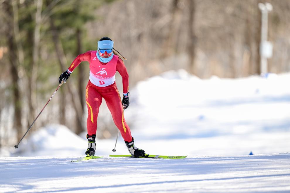 2月9日,中國選手巴亞尼·加林在第九屆亞冬會越野滑雪女子5公里(自由技術)比賽中。新華社記者 連振 攝