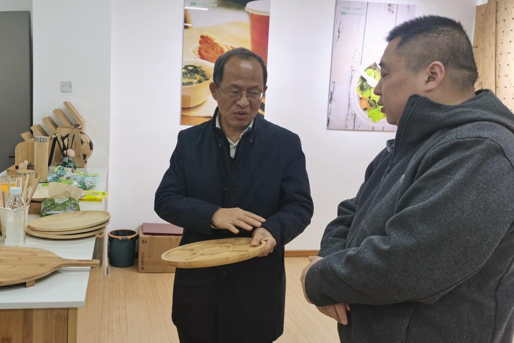蘭定國(左)在進行“以竹代塑”調研。(受訪者供圖)