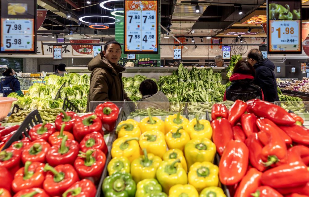 2月9日,消費者在貴州省黔西市一家超市選購蔬菜。新華社發(fā)(范暉攝)