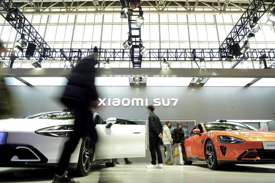 2024年11月28日,人們在第二屆中國國際供應(yīng)鏈促進(jìn)博覽會(huì)智能汽車鏈展區(qū)小米汽車展臺(tái)參觀。新華社發(fā)(那宇奇攝)