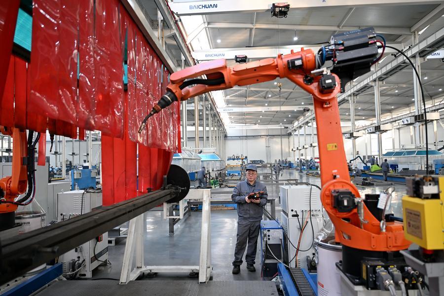 2月18日,工人在唐山百川機(jī)器人共享智能制造工廠內(nèi)測試機(jī)器人產(chǎn)品性能。新華社記者 牟宇 攝