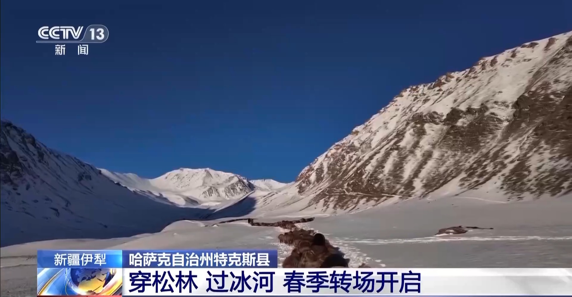 這幾天,新疆伊犁哈薩克自治州特克斯縣11.7萬(wàn)只牲畜開(kāi)啟春季轉(zhuǎn)場(chǎng),當(dāng)?shù)啬撩駛冓s著牲畜跨越海拔3800多米的喬拉克阿蘇達(dá)坂,從伊犁河谷最大的冬牧場(chǎng)——包扎得爾冬牧場(chǎng)趕往春牧場(chǎng)或者定居點(diǎn)。一路上穿松林、過(guò)冰河,路途艱辛。