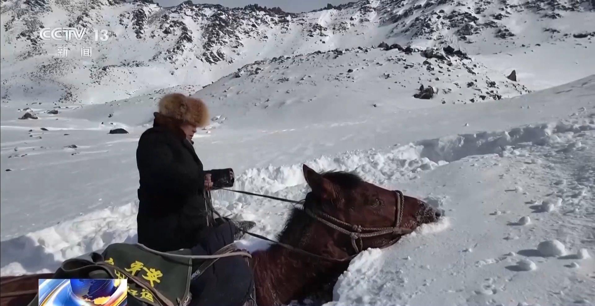山上有很厚的積雪。即使有之前轉(zhuǎn)場(chǎng)的畜群踩出的路,也會(huì)很快被風(fēng)吹雪覆蓋。剛上達(dá)坂,干部阿曼吐?tīng)栻T的馬一不留神就摔在雪窩里,好在積雪厚,人和馬都沒(méi)有大礙。
