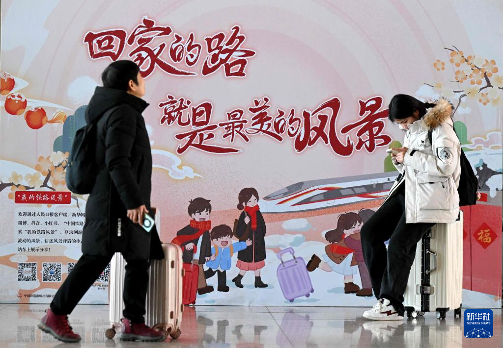 圖為2月22日,旅客在河北秦皇島火車站準(zhǔn)備乘車。