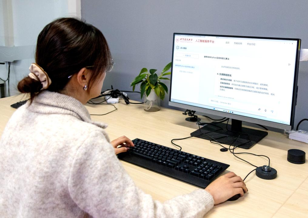 北京建筑大學(xué)學(xué)生體驗該?;贒eepSeek打造的“匠心智語”人工智能平臺。新華社發(fā)