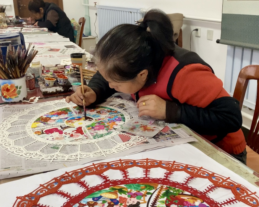 南張莊村阿姨正在點染剪紙。邢建榮 攝