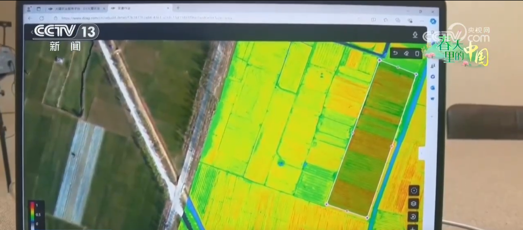 這是許昌禹州市順店鎮(zhèn)逍店村的一處高標準農(nóng)田,多光譜無人機正進行巡田作業(yè)。它就相當于麥田的“醫(yī)生”,通過光譜圖為麥田開出藥方,紅色代表苗情較好,而綠色則代表苗情弱,需要特別關注。通過這些數(shù)據(jù),工作人員就可以計算出不同地塊對水肥的需求量,因地制宜變量施肥,再結合水肥一體化智能管控系統(tǒng),可節(jié)約人工、施肥等綜合成本約15%。這不僅有效降低了種糧戶的成本,也避免過度施肥對土壤帶來的影響。