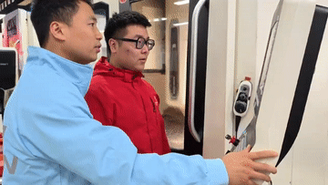 楊登輝(左二)指導(dǎo)學(xué)生對(duì)器件數(shù)控銑加工進(jìn)行程序編程。