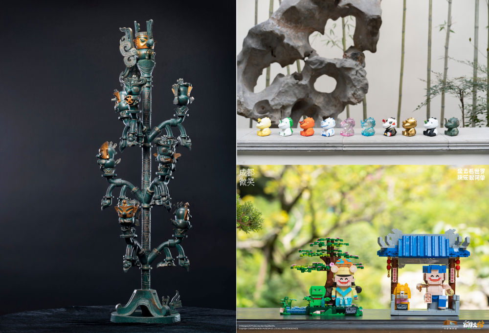 這是曾舟以青銅神樹、鎮(zhèn)水石犀、說(shuō)唱俑等為原型設(shè)計(jì)的部分文創(chuàng)產(chǎn)品。