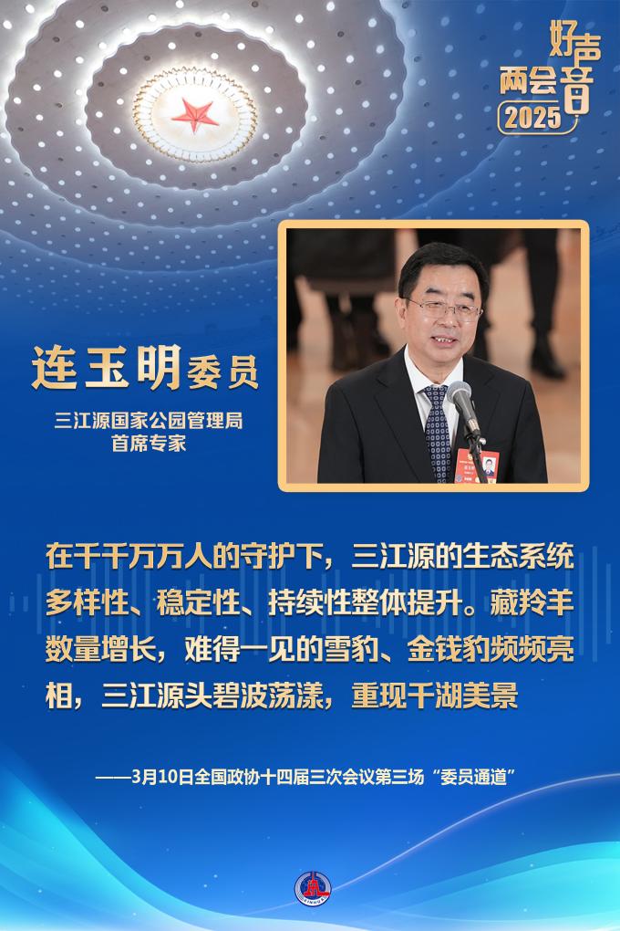 第一位回答記者提問(wèn)的三江源國(guó)家公園管理局首席專家連玉明委員,是一名援青干部。他告訴大家,在三江源國(guó)家公園,有21432名生態(tài)管護(hù)員。在千千萬(wàn)萬(wàn)人的守護(hù)下,三江源的生態(tài)系統(tǒng)多樣性、穩(wěn)定性、持續(xù)性整體提升。藏羚羊數(shù)量增長(zhǎng),難得一見(jiàn)的雪豹、金錢(qián)豹頻頻亮相,三江源頭碧波蕩漾,重現(xiàn)千湖美景。