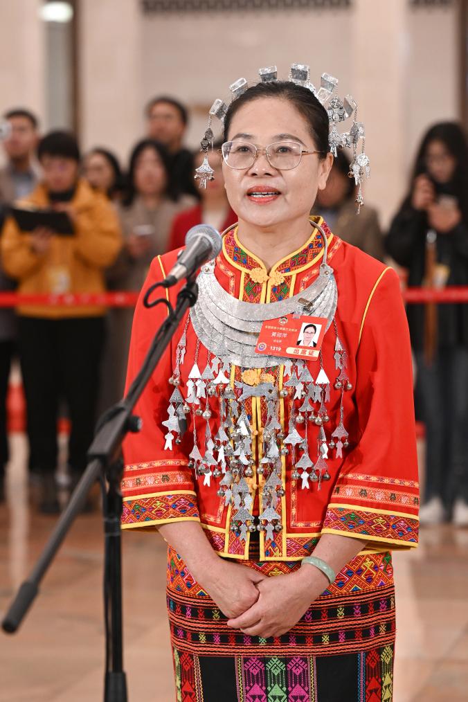 3月10日,全國(guó)政協(xié)十四屆三次會(huì)議第三場(chǎng)“委員通道”集體采訪活動(dòng)在北京人民大會(huì)堂舉行。這是全國(guó)政協(xié)委員黃麗萍接受媒體采訪。新華社記者 金良快 攝