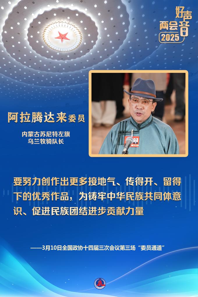 “在內(nèi)蒙古大地上,活躍著75支烏蘭牧騎隊(duì)伍,有3000多名隊(duì)員,每年開(kāi)展演出1萬(wàn)多場(chǎng)。”阿拉騰達(dá)來(lái)委員說(shuō),要努力創(chuàng)作出更多接地氣、傳得開(kāi)、留得下的優(yōu)秀作品,為鑄牢中華民族共同體意識(shí)、促進(jìn)民族團(tuán)結(jié)進(jìn)步貢獻(xiàn)力量。