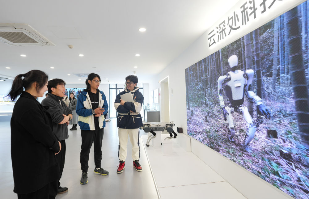 2月28日,杭州云深處科技有限公司技術(shù)支持團(tuán)隊(duì)的工程師為客戶介紹一款人形機(jī)器人的應(yīng)用。新華社記者 翁忻旸 攝