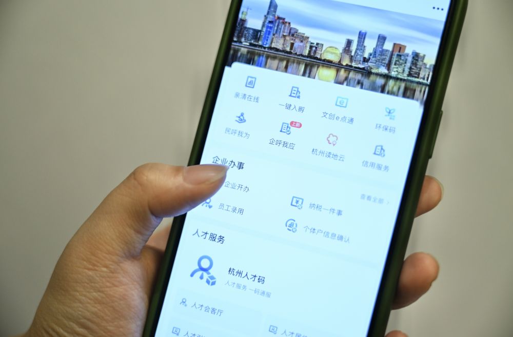 圖為“浙里辦”手機(jī)應(yīng)用客戶端上的杭州企業(yè)服務(wù)專區(qū)。新華社記者 劉銘翔 攝