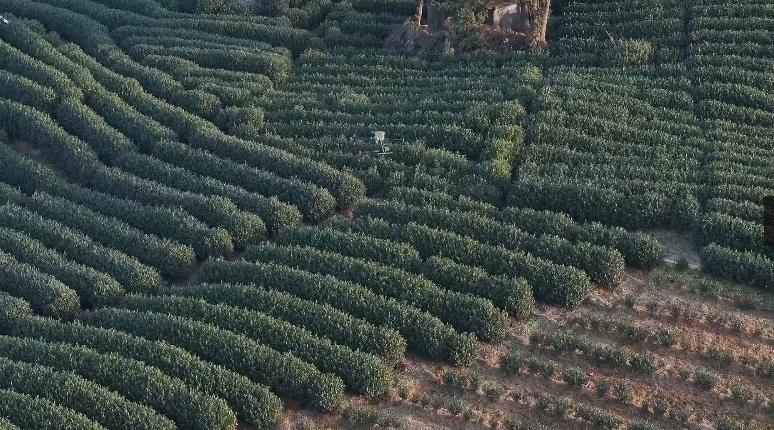 無(wú)人機(jī)正在茶園進(jìn)行凍害巡防作業(yè)。受訪者供圖。