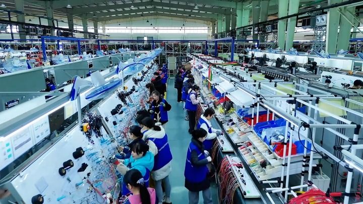 在湖南天海電器有限公司,生產(chǎn)線一片忙碌景象。受訪者供圖。