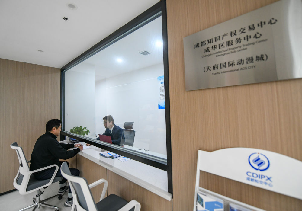 2月27日,民營(yíng)企業(yè)工作人員在成都知識(shí)產(chǎn)權(quán)交易中心成華區(qū)服務(wù)中心咨詢相關(guān)政策。新華社記者 王曦 攝