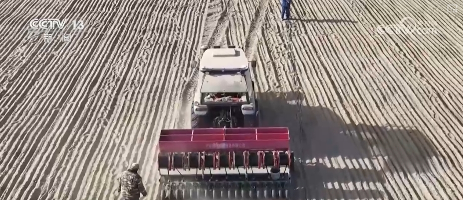 近日,甘肅酒泉金塔縣的10萬畝小麥開始播種。當(dāng)?shù)負(fù)屪マr(nóng)時(shí),推廣機(jī)械化手段,助力農(nóng)業(yè)生產(chǎn)。
