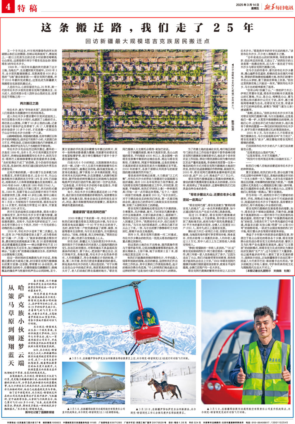 經(jīng)過(guò)一段時(shí)間的實(shí)地勘測(cè)與多方論證,易地搬遷最終成為破局之策。時(shí)任塔吉克阿巴提鎮(zhèn)鎮(zhèn)長(zhǎng)的夏爾亞德·達(dá)吾提,帶領(lǐng)著80余名牧民,牽著馱滿(mǎn)家當(dāng)?shù)年笈?,沿著傍崖險(xiǎn)徑蹣跚前行,鍋碗瓢盆的撞擊聲與牲畜鈴鐺聲在山谷間回響。至今,夏爾亞德的手機(jī)里還珍藏著當(dāng)年搬遷的照片,其中一張?zhí)厥獾挠跋褡顬檎鸷常弘p眼蒙布的塔吉克老嫗緊貼著驢背,前方牽引韁繩的干部半個(gè)身子懸在崖壁外側(cè)。