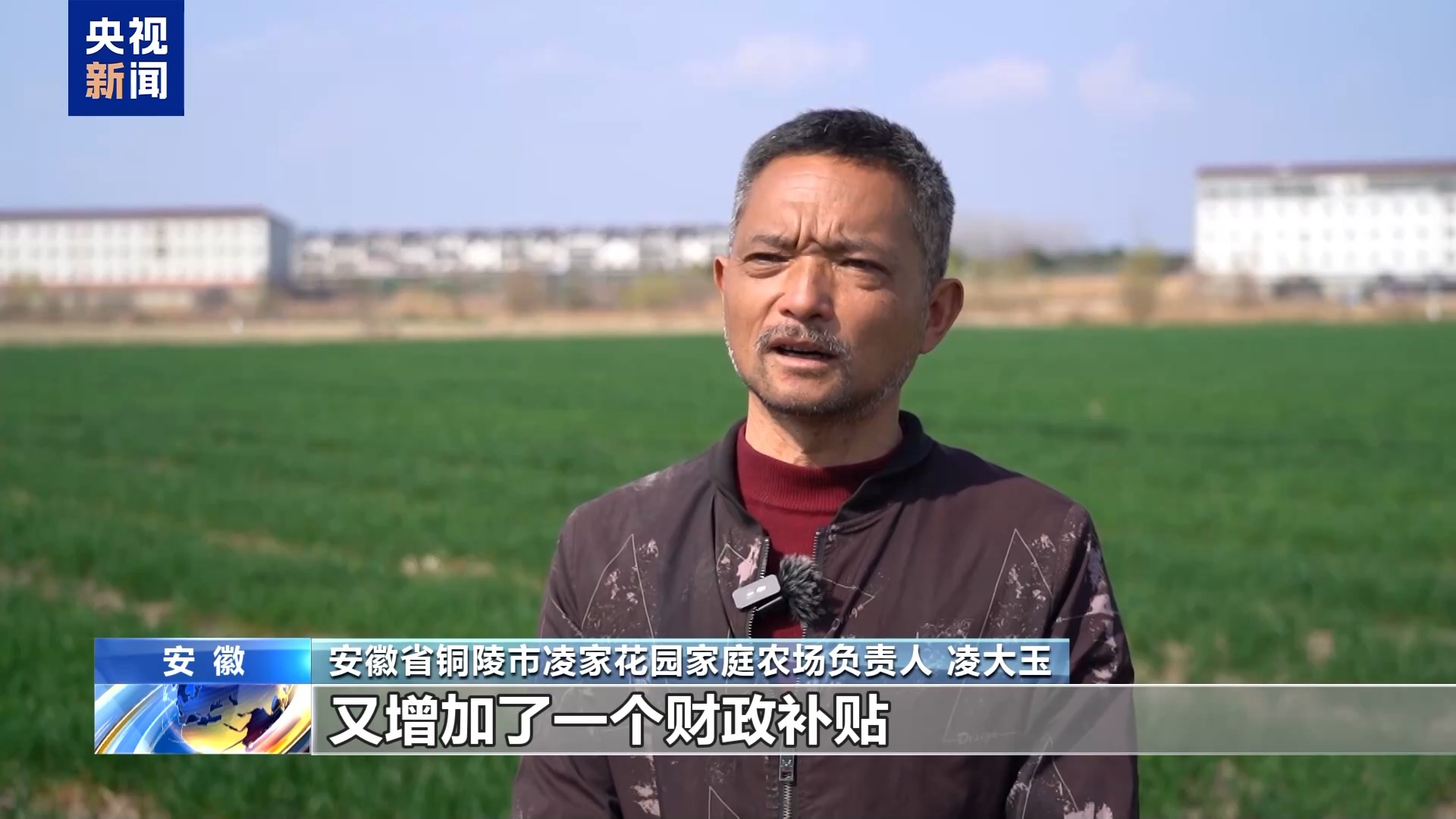 安徽省銅陵市凌家花園家庭農(nóng)場負(fù)責(zé)人 凌大玉:農(nóng)業(yè)補(bǔ)貼過去“撒胡椒面”,種多種少都一樣。現(xiàn)在對大戶承包三百畝以上又增加了一個(gè)財(cái)政補(bǔ)貼,17塊一畝。我和我兄弟倆有七八百畝,又增加了一萬多塊錢。政府鼓勵(lì)機(jī)插秧,又給我們15塊錢一畝補(bǔ)貼,等于我和我兄弟倆有兩萬多塊錢收入了。