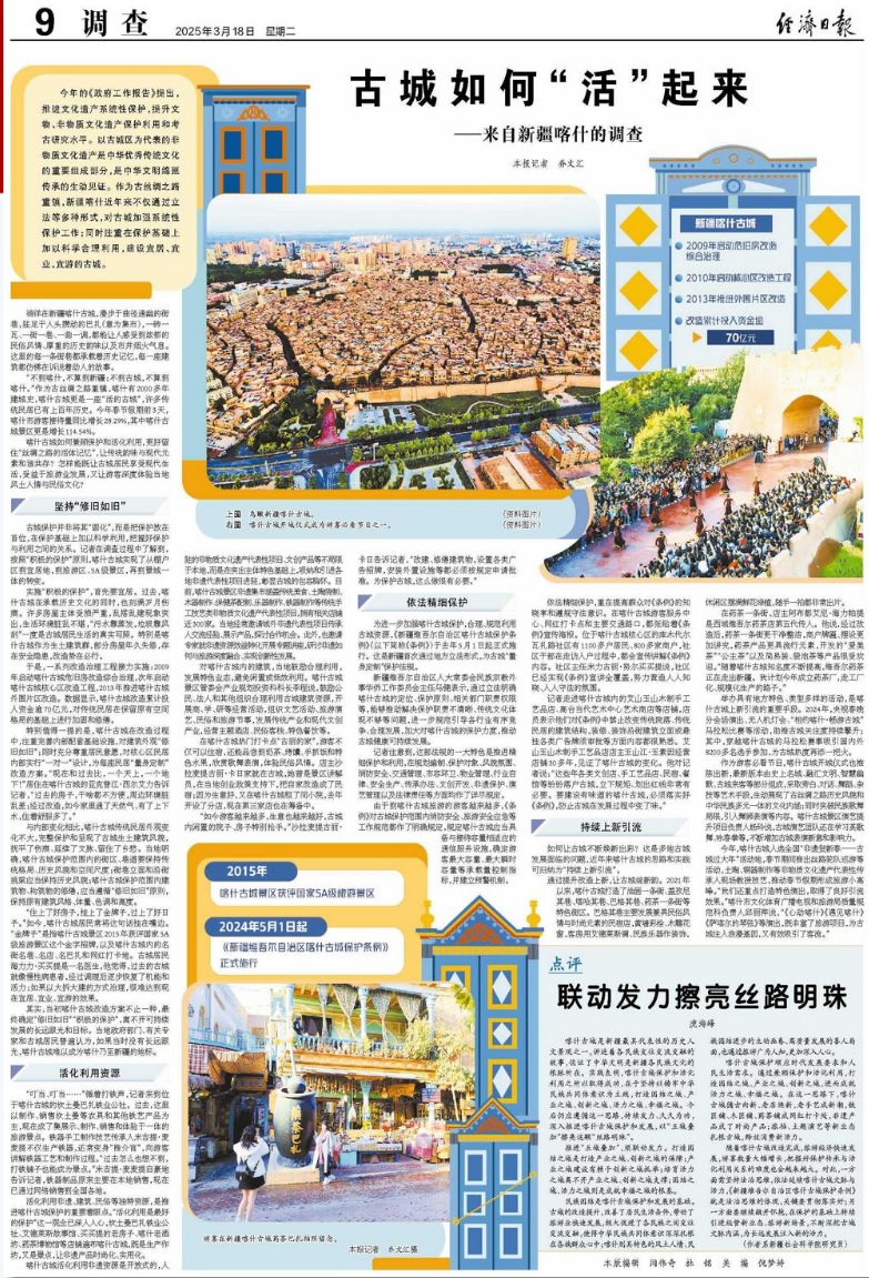 今年的《政府工作報告》提出,推進(jìn)文化遺產(chǎn)系統(tǒng)性保護(hù),提升文物、非物質(zhì)文化遺產(chǎn)保護(hù)利用和考古研究水平。以古城區(qū)為代表的非物質(zhì)文化遺產(chǎn)是中華優(yōu)秀傳統(tǒng)文化的重要組成部分,是中華文明綿延傳承的生動見證。作為古絲綢之路重鎮(zhèn),新疆喀什近年來不僅通過立法等多種形式,對古城加強系統(tǒng)性保護(hù)工作;同時注重在保護(hù)基礎(chǔ)上加以科學(xué)合理利用,建設(shè)宜居、宜業(yè)、宜游的古城。