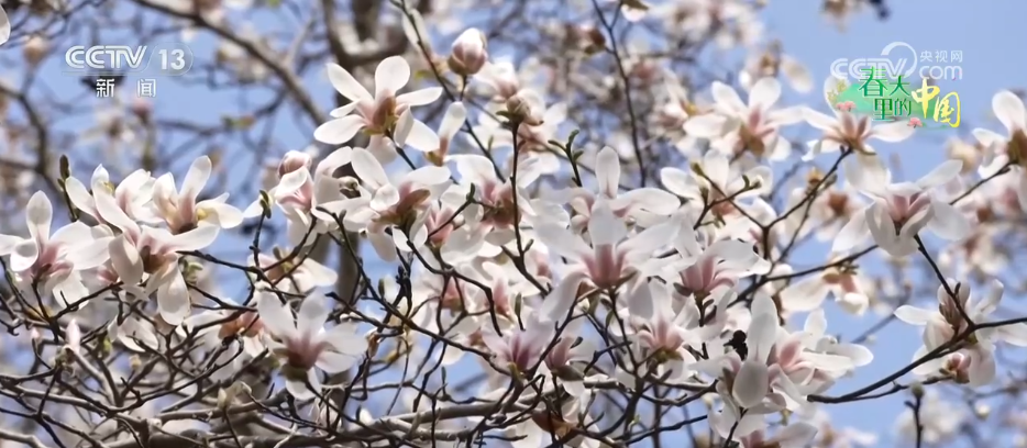 首先,跟隨鏡頭來到空中視角——碧綠的垂柳、清澈的泉水,還有格外搶眼的、潔白的春花。它究竟是誰呢?接下來,把視線拉回到地面。原來是公園里的望春玉蘭已經(jīng)掛滿了枝頭,為市民游客們帶來春天的氣息。望春玉蘭又叫望春花、迎春樹,作為濟南春天最早綻放的木蘭屬植物,被很多市民游客當做賞花季開始的信號。在色彩上,望春玉蘭既非純白的白玉蘭,又不像鮮艷的紫玉蘭,而是呈現(xiàn)出一種由紫到白的漸變色,這種色彩仿佛從花的基部逐漸滲透出來,顯得淡雅別致。每當春風拂過,這里便會有暗香浮動,讓春天的氣息既能看得見,又能聞得著。