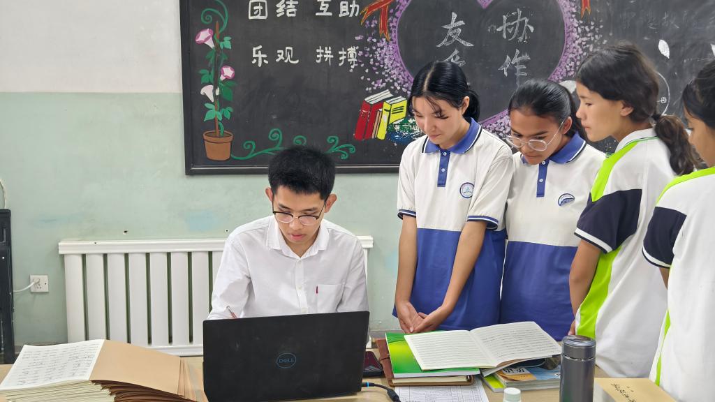同樣來自山東的小伙兒蓋彥吉對支教事業(yè)抱有激情。2024年夏天,從中國農(nóng)業(yè)大學(xué)本科畢業(yè)后,他參加了學(xué)校的西部計(jì)劃研究生支教團(tuán),來到莎車縣第三中學(xué)任教。在教學(xué)工作中,蓋彥吉發(fā)現(xiàn),青年教師的天然親和力,能更好激發(fā)學(xué)生的求知欲。