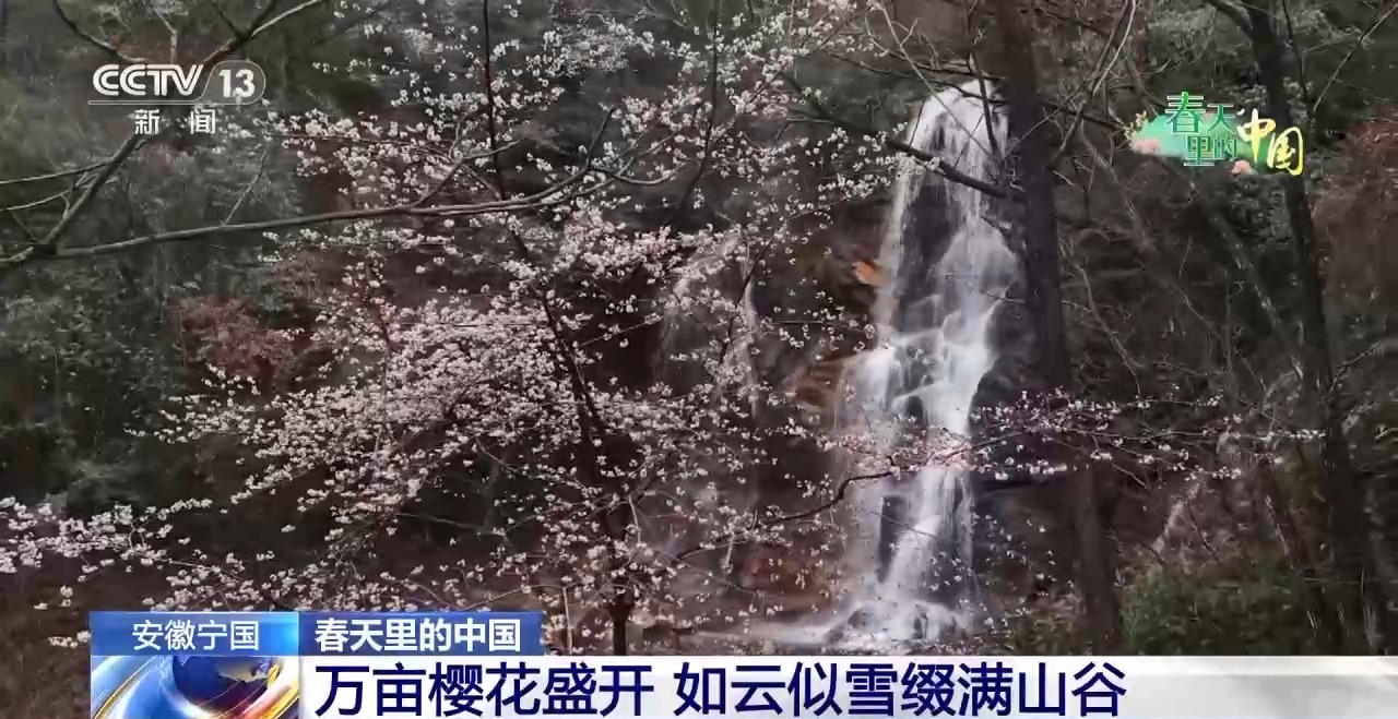 萬(wàn)畝櫻花盛開(kāi) 如云似雪綴滿山谷