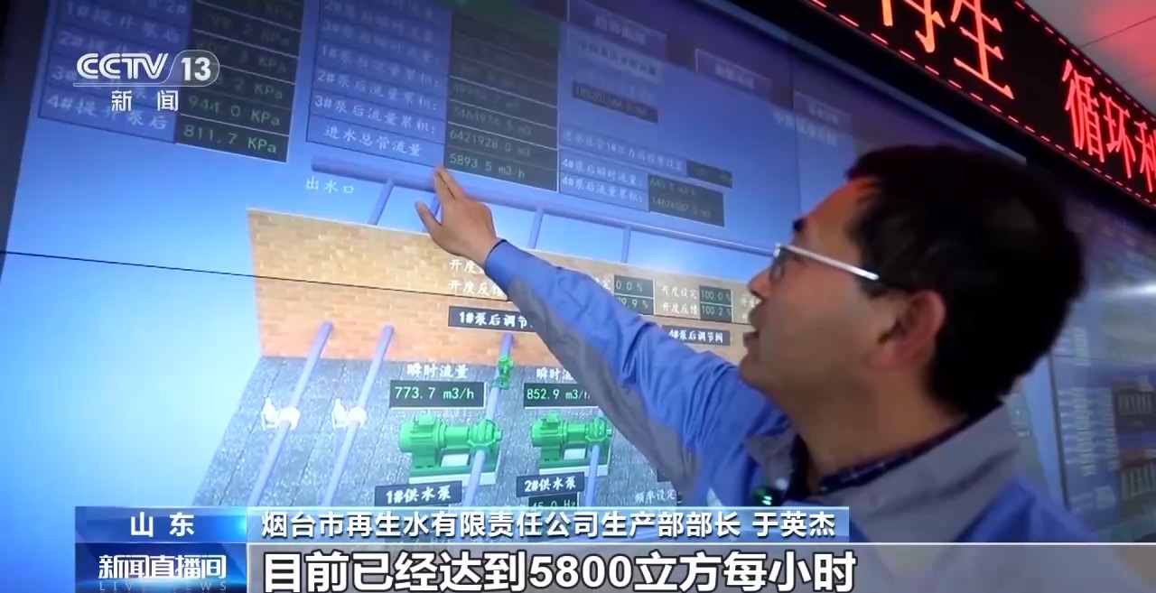 煙臺市再生水有限責(zé)任公司生產(chǎn)部部長 于英杰:萬華工業(yè)園區(qū)供水的實(shí)時流量顯示,目前已經(jīng)達(dá)到5800立方/小時,全天累計(jì)14.5萬立方。