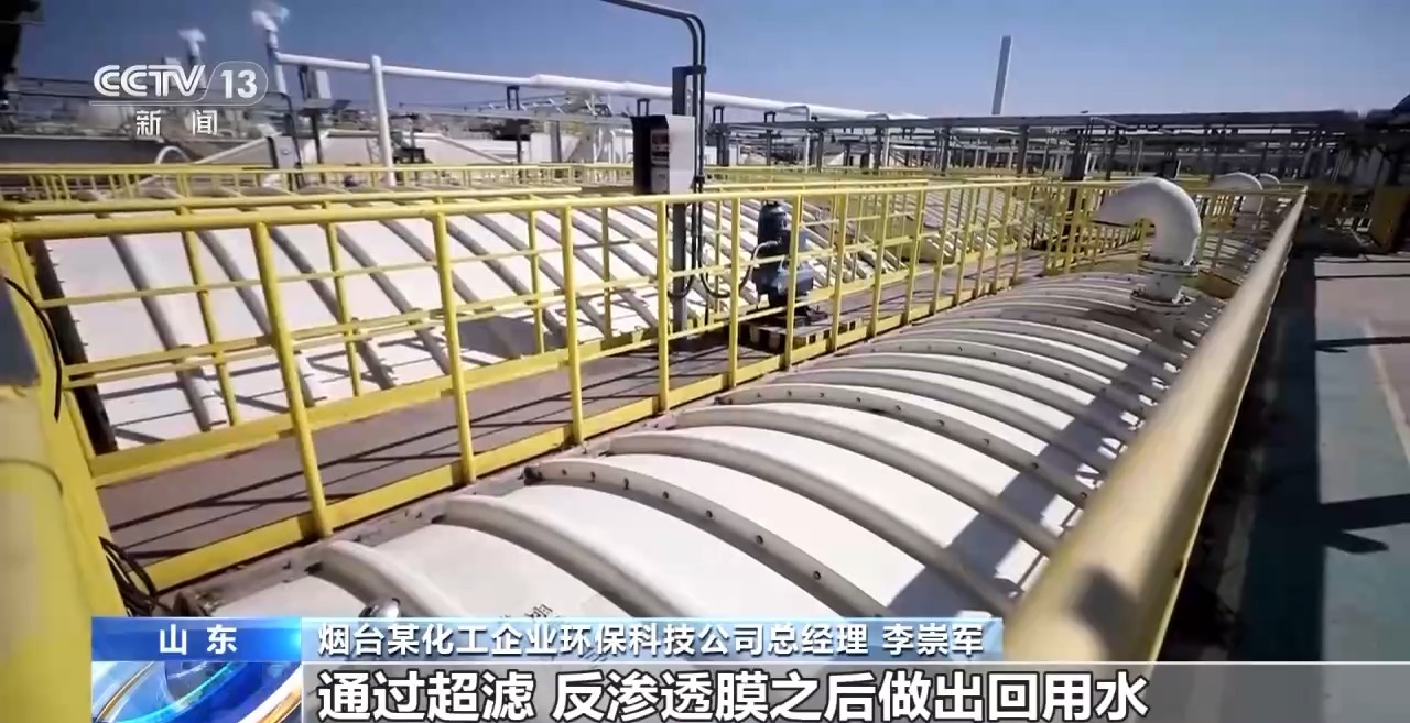 煙臺某化工企業(yè)環(huán)保科技公司總經(jīng)理 李崇軍:我們的污水處理廠最開始設(shè)計(jì)的時候就采用了污污分治、清污分治的一些策略,包括物化、生化、高級氧化的一些工藝,最后全部送到我們的回用水車間,通過超濾、反滲透膜之后做出回用水,再送回園區(qū)使用。