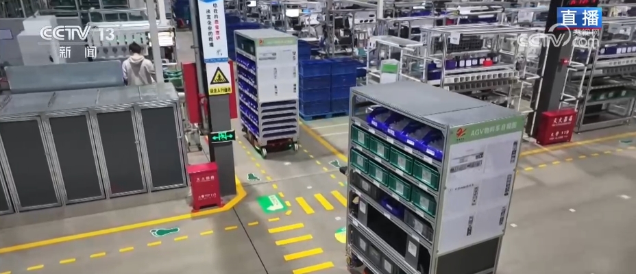 走進企業(yè)生產(chǎn)車間,最直觀的感受就是高度的自動化。這些忙碌的機器人,正在把物料運送到生產(chǎn)線的各個點位上。地面上這些二維碼是為機器人鋪設(shè)的“數(shù)字軌道”,能夠引導機器人有條不紊地精準配送。在整個車間,從原料的上料、流轉(zhuǎn)到成品的加工、入庫,自動化率達到了90%以上。盡管2025年一季度企業(yè)的訂單增長了40%,各條生產(chǎn)線24小時不停工生產(chǎn),也能確保訂單的如期交付。