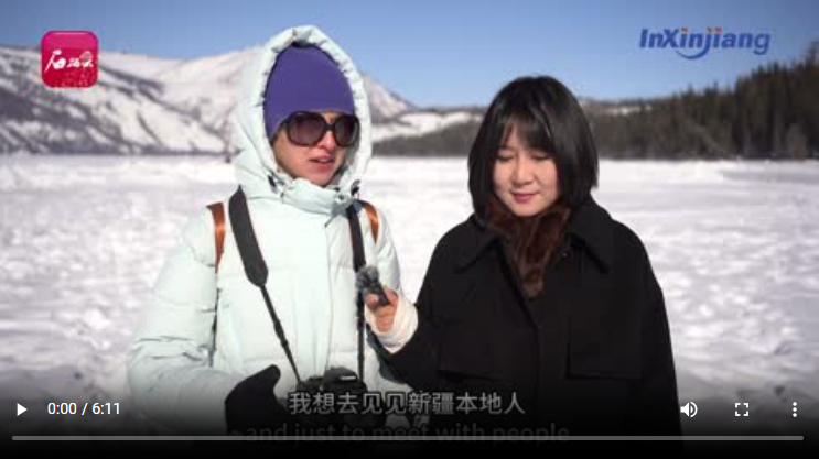 受邀做客本期《InXinjiang》欄目訪(fǎng)談的,是來(lái)自白俄羅斯的記者瑪麗娜。這是她第二次到新疆,走在喀納斯湖冰面上,她被眼前的美景和當(dāng)?shù)刎S富多彩的文化活動(dòng)深深吸引?,旣惸入y掩內(nèi)心歡喜:“現(xiàn)代化基礎(chǔ)設(shè)施與自然美景相得益彰,這是我喜歡新疆的理由?!?/p>