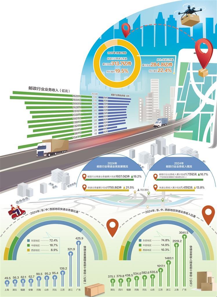 消費是經(jīng)濟增長的主引擎,快遞業(yè)務增長源于消費需求有效釋放。從中央經(jīng)濟工作會議強調大力提振消費、提高投資效益,全方位擴大國內需求,到今年《政府工作報告》圍繞“大力提振消費”作出工作部署,再到各級政府和有關部門加碼促消費,消費市場活力持續(xù)攀升。2025年,消費潛能將加速釋放,快遞業(yè)仍將保持穩(wěn)步上升態(tài)勢,更多人會享受到便捷的寄遞服務。 (本文來源:經(jīng)濟日報 作者:吉蕾蕾)