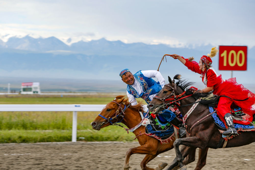 2024年7月10日,新疆代表團(tuán)運動員在新疆昭蘇參加表演項目競技類“姑娘追”比賽。新華社記者 陳朔 攝